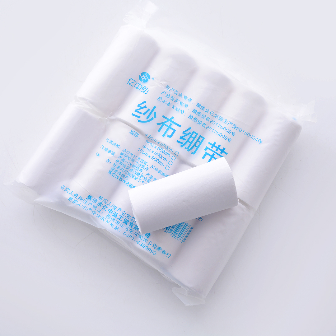 【主要結構和組成】紗布繃帶由脫脂棉紗布打卷切割制成,不與創(chuàng)面直接接觸。粘貼部位為完好皮膚,非無菌產品,一次性使用。